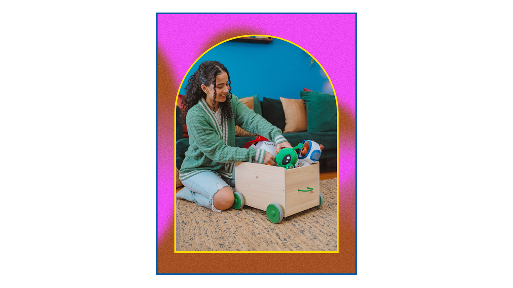 Bigger toys are more of a challenge – they have a way of spilling out of the bedroom. But the IKEA FLISAT toy storage — a wheeled bin that rolls smoothly to different areas of the room — has proven to be the game-changing answer to easy cleaning. “They’re perfect for when I need to clean up quickly,” she says. “At night, we bring the living room back so it’s a welcoming space with no clutter the next day.”
