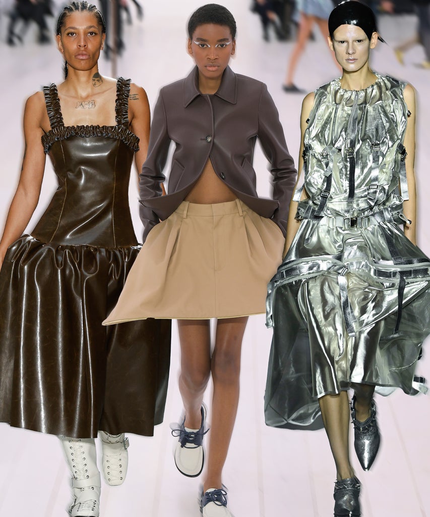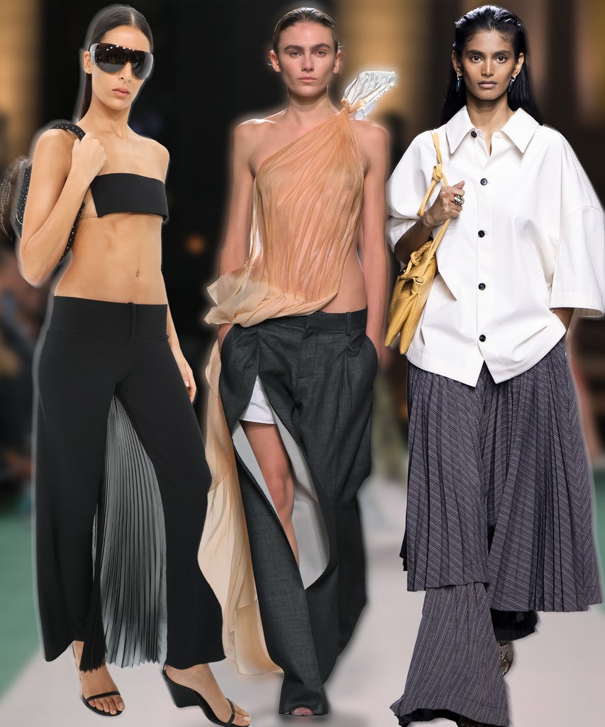 At Totême, Dries Van Noten, Marina Moscone and Simone Rocha, lightweight silks that catch the slightest breeze take center stage in the form of swirling tulle skirts and sheer sheath dresses, cut on the bias that lend an ephemeral feel to a simple silk dress. Certainly, we have seen the soft power of a layer of tulle, romantic to show off the female form. Even more on-trend are gauzy maxi dresses, button-downs and flowy pants that let the bottoms shine.