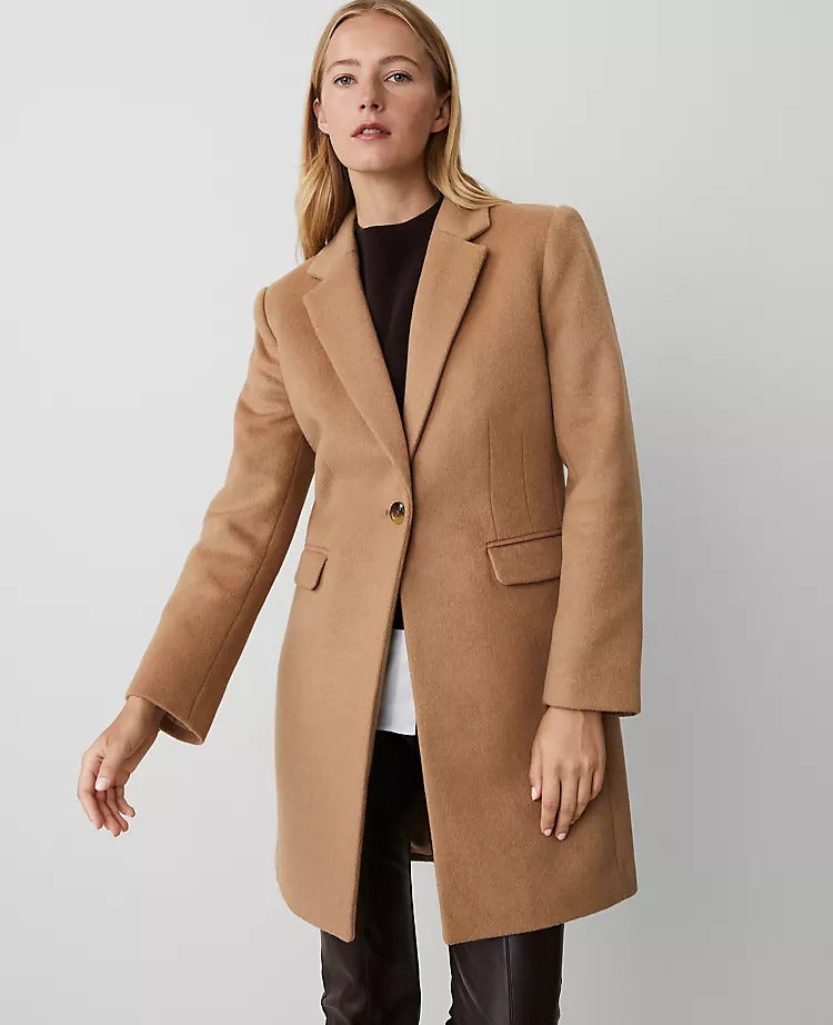 Coat trends may come and go, but the appeal of a classic camel jacket is forever. The structured silhouette and scalloped lapels make this wool number a wardrobe staple. Another bonus? A shorter length is available for petite people.
